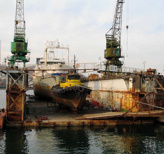 Судоремонтники «Приморского завода» продолжают ремонтировать в плавдоке №2 буксир «ТАЙФУН», принадлежащий ОАО «Восточный порт».
