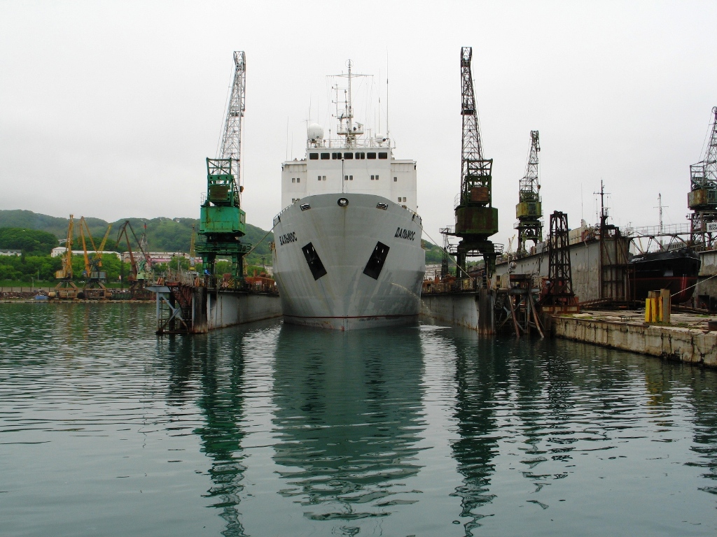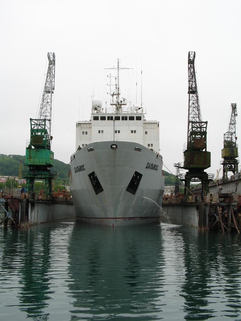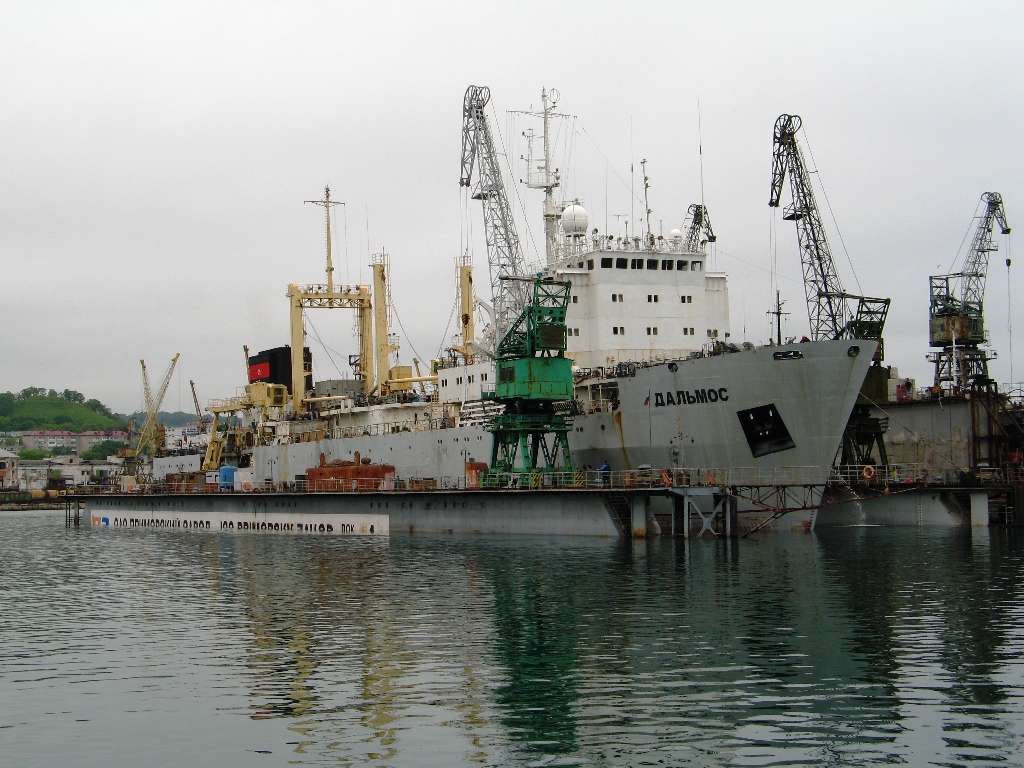 Следом за «Дальмосом» в плавучий док№4 поднят теплоход «ВОСТОК», которому предстоит доковый ремонт на класс Регистра РФ.