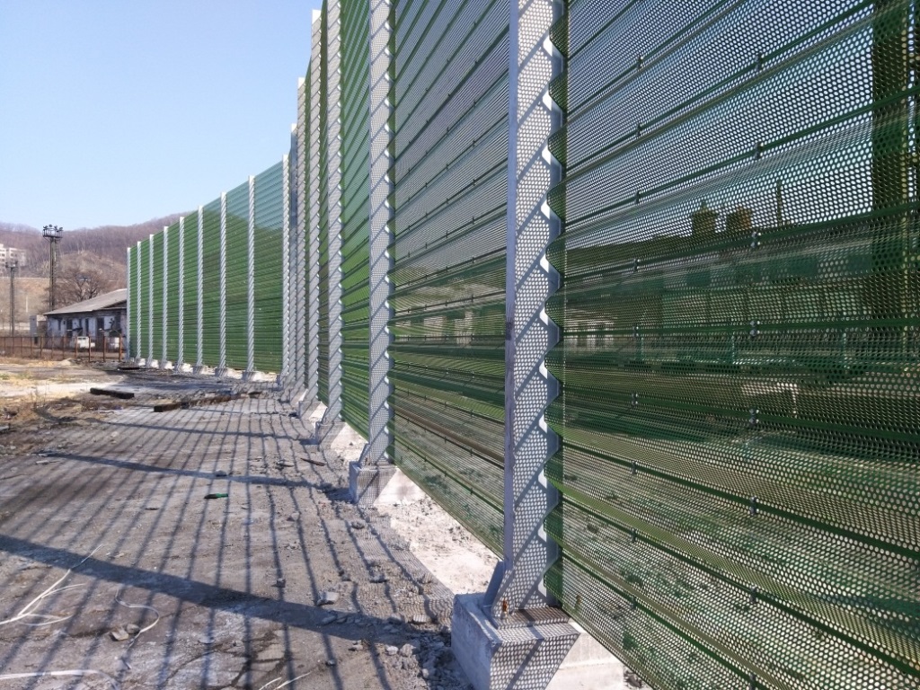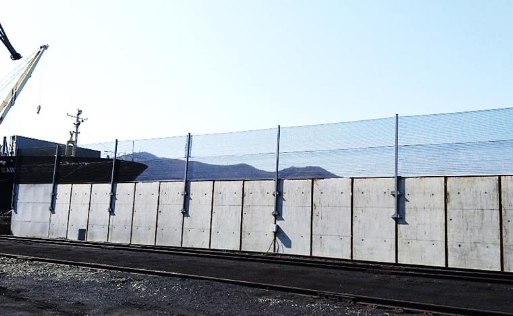 «Порт Восточные ворота – Приморский завод» смонтировал три очереди ветрозащитного ограждения. Общая протяженность пылезащитного экрана – 200 метров при высоте более 11 метров. Конструкция эффективно замедляет скорость воздушных потоков, которые приводят к пылению груза.