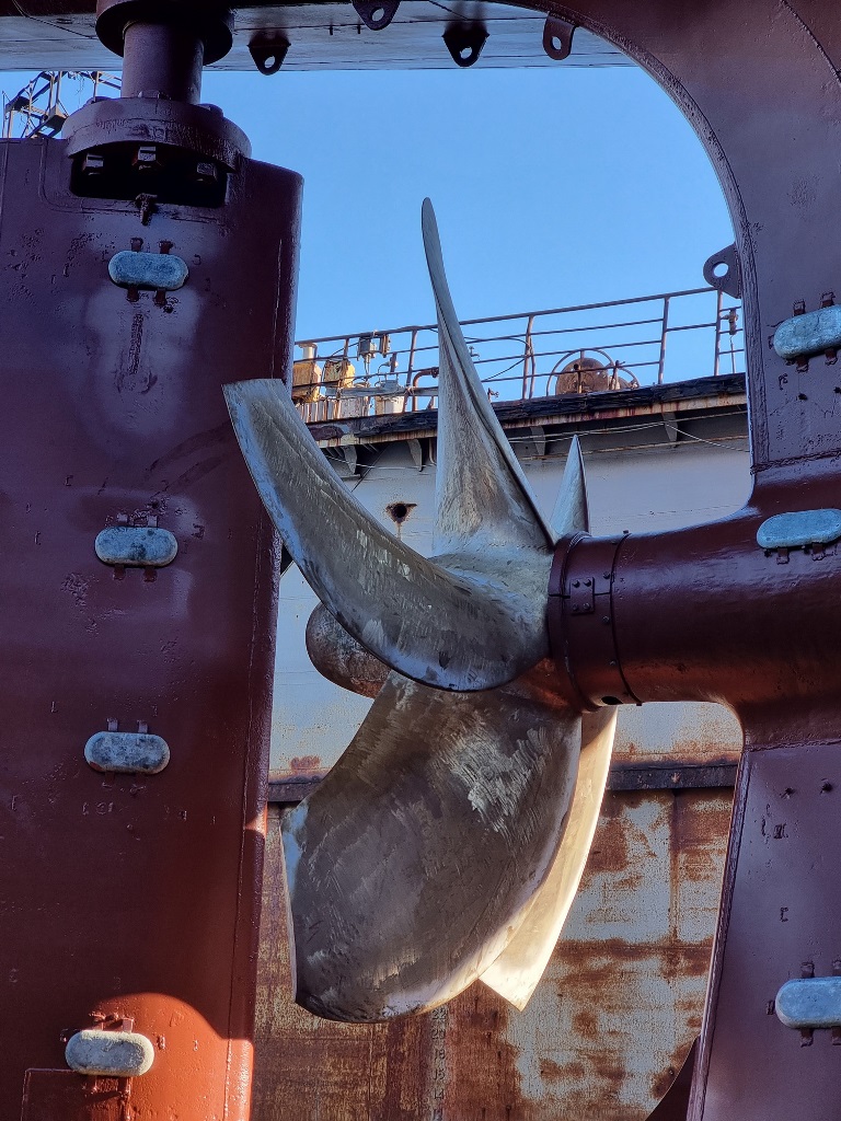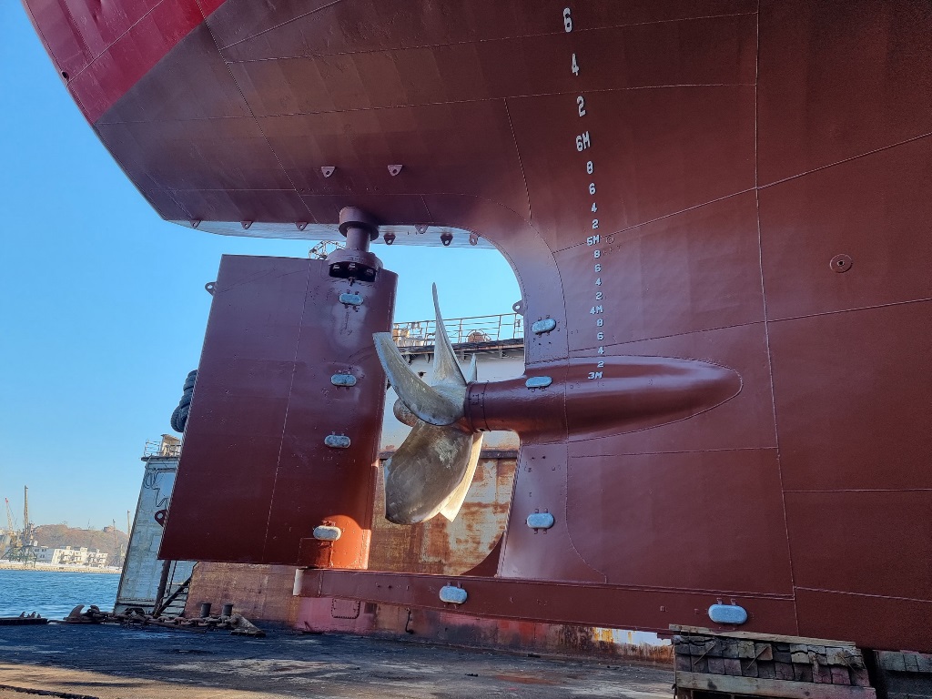 Судоремонтники «Приморского завода» выполнили полный комплекс доковых работ – очистку, покраску корпуса судна, трубопроводные работы, а также ремонт донно-забортной арматуры, винто-рулевого комплекса (ВРК), якорей, лебедок, шлюпочных устройств, теплообменных аппаратов.