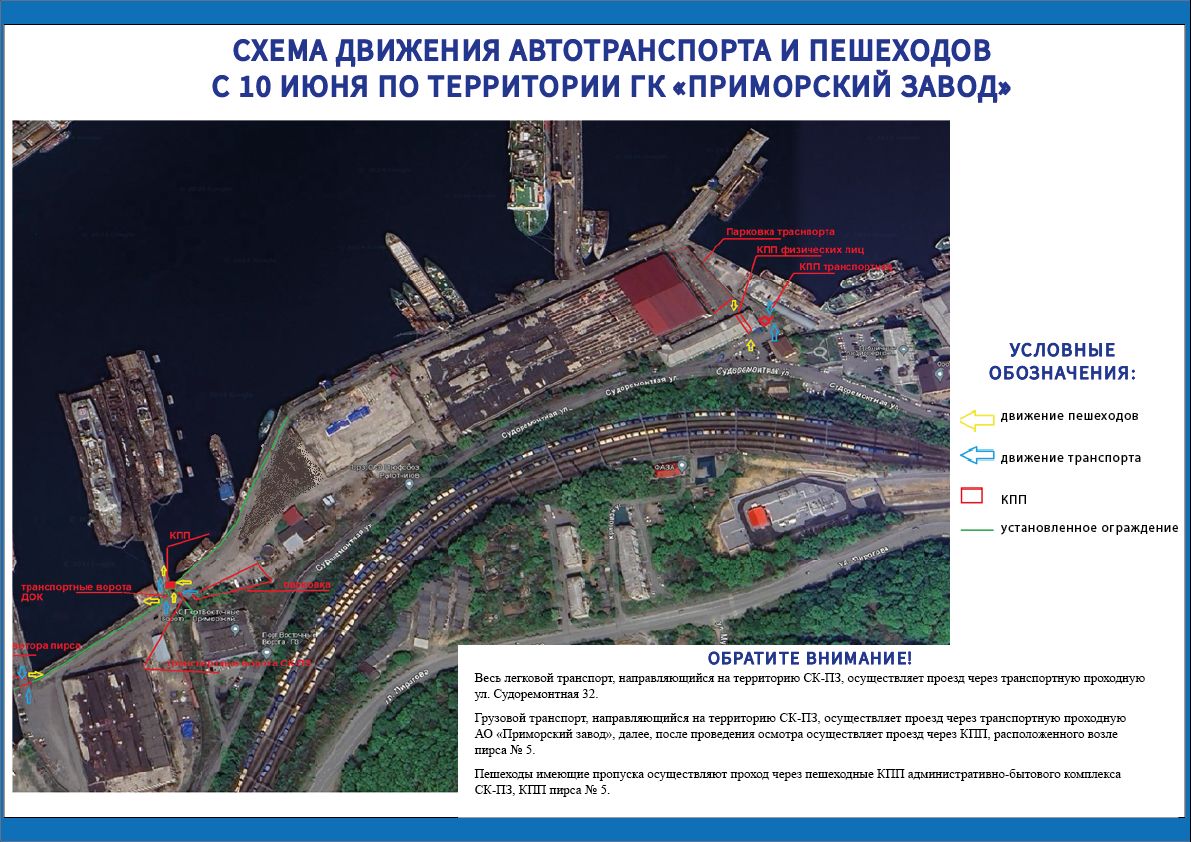 Внимание! С 10 июня изменится схема движения транспорта и пешеходов на территории Группы компаний «Приморский завод».