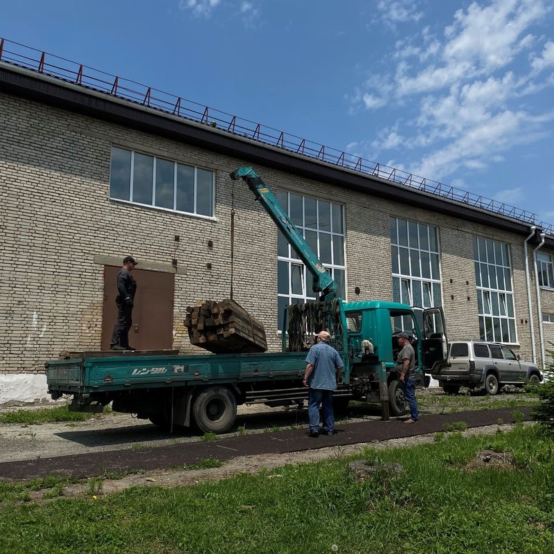 Приморский завод не остановился только на ремонте класса: для благоустройства парка на территории школы 21.06.2024 были переданы несколько кубов пиломатериала.