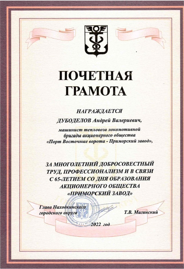 В локомотивном депо Группы компаний “Приморский завод” работает человек, который о железной дороге знает всё и даже чуточку больше. Андрей Валериевич Дубоделов пришёл сюда 1 мая 1995 года и с тех пор прошёл путь от составителя поездов до машиниста тепловоза, а теперь трудится слесарем.
