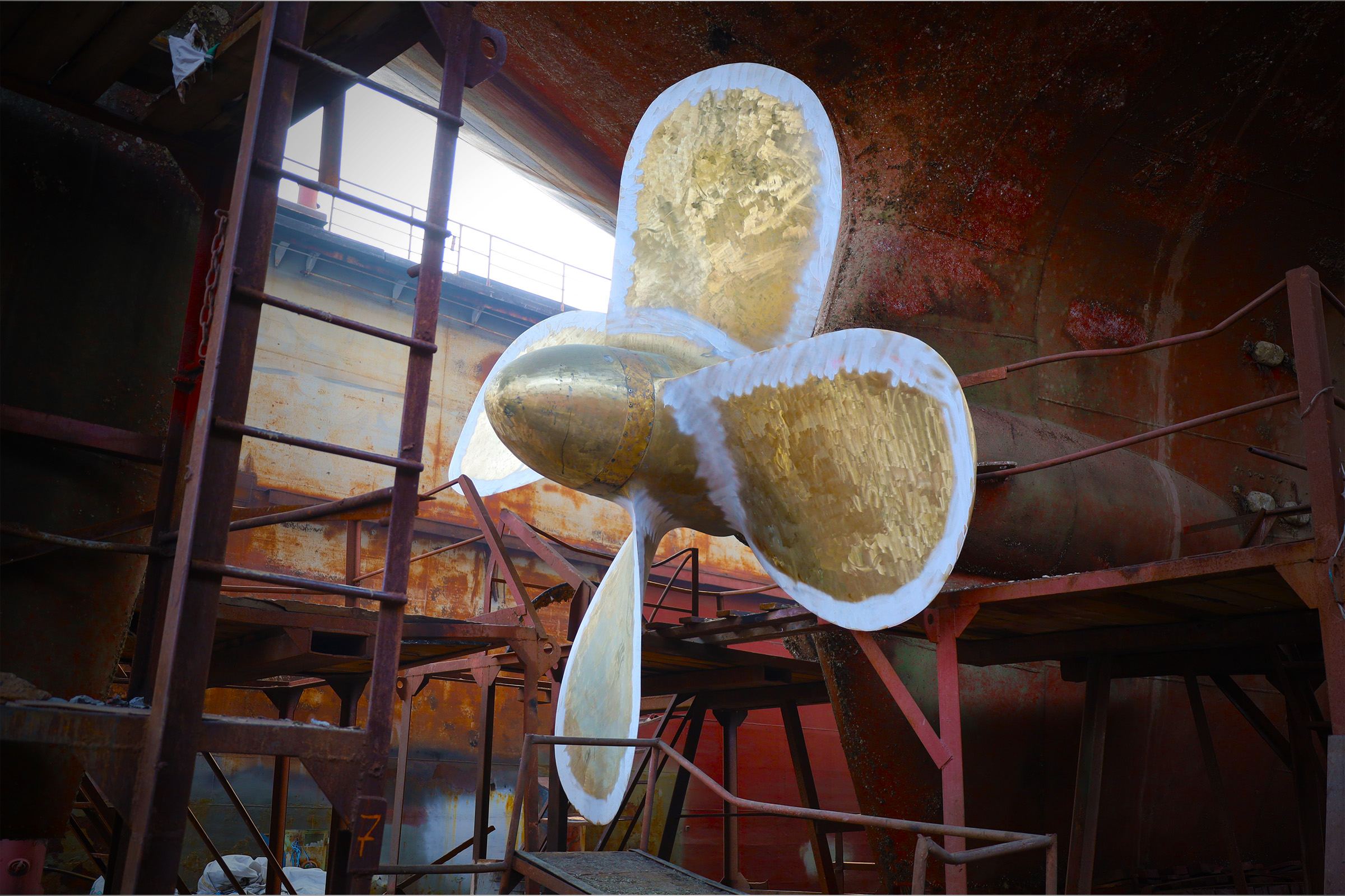 В числе предстоящих задач — полная окраска судна с нанесением маркировки и названия, монтаж новой протекторной защиты, а также закатка цепей с якорями после финального окрашивания и установка кингстонных решёток.