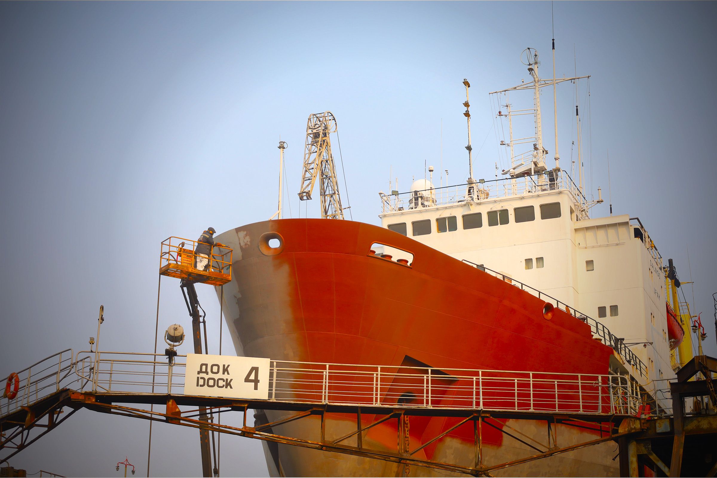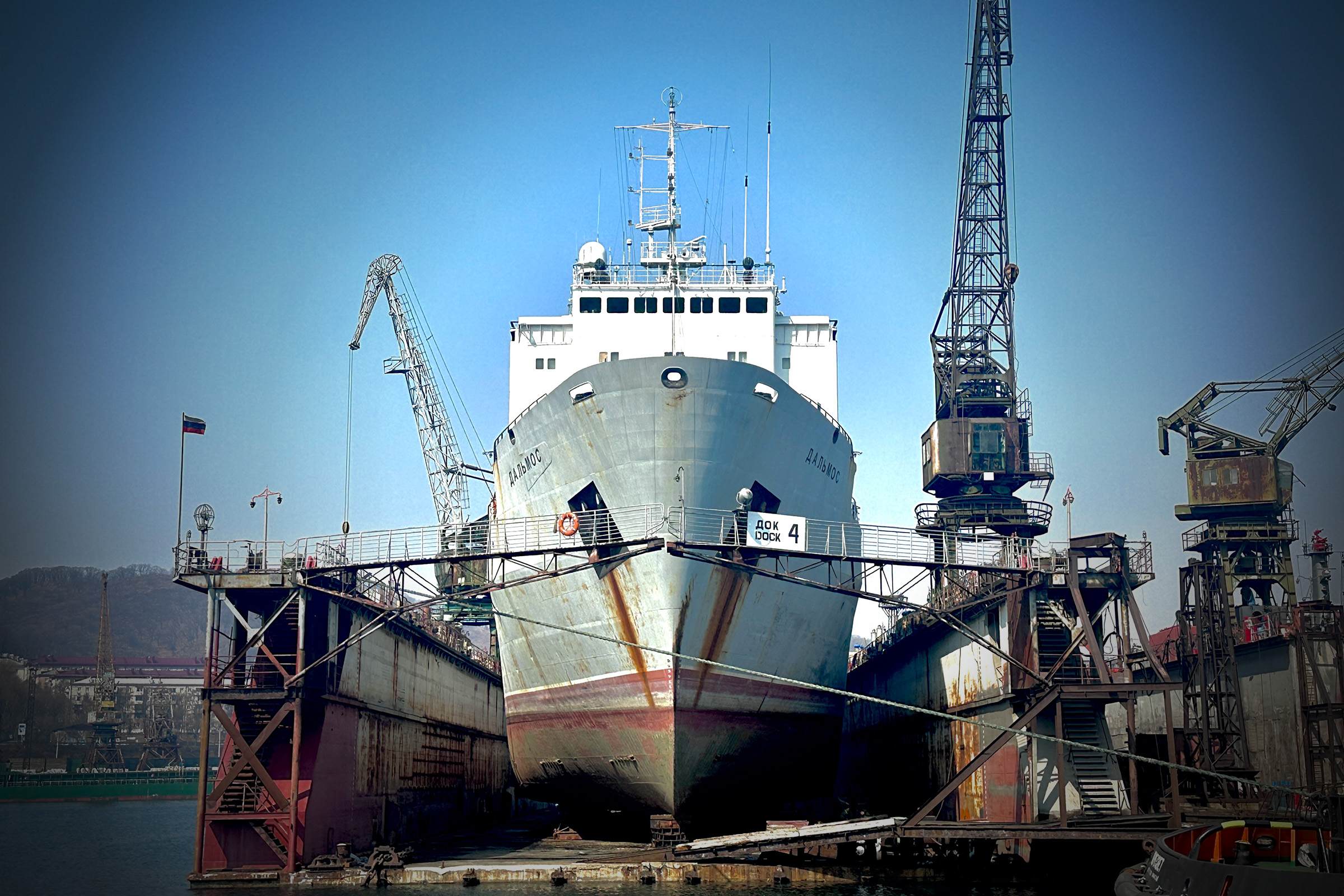 В плавучем доке № 4 продолжаются работы в рамках планового промежуточного ремонта плавбазы «Дальмос», судовладельцем которой выступает ООО «Поллукс». Ремонт идет строго по графику, несмотря на увеличение объема работ.