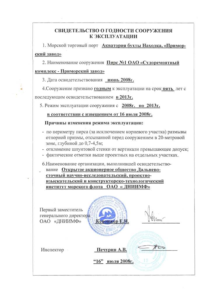 производ. - 10 м3/мин, давление - 6,5 кг/см2 плавдок №4 макс.доковый вес судна - 8500 т, макс.длина - 170 м, макс.осадка - 5,4 м напряжение - 380 В, частота - 50 Гц 8Чн 25/30, мощность 300 кВт, кол-во - 2