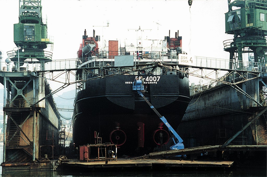 и спецтехникаПредприятие располагает комплектом гидравлических лифтов фирмы AICHI для работы в доках высотой до 17 м, а также автопогрузчиками:
